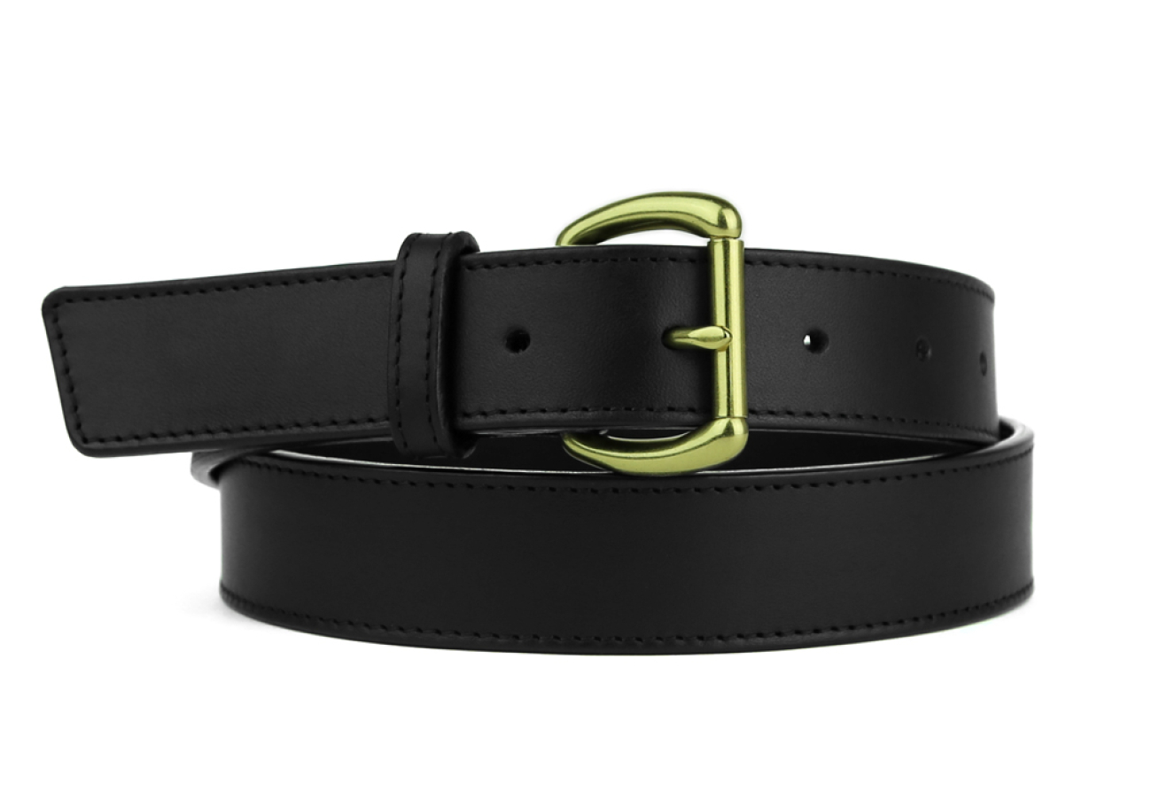 This wardrobe essential is made in our classic harness belting leather making it that much easier to wear with just about any outfit. Handcrafted with our signature lamination construction and solid brass buckle, it will prove its durability and versatility season after season.