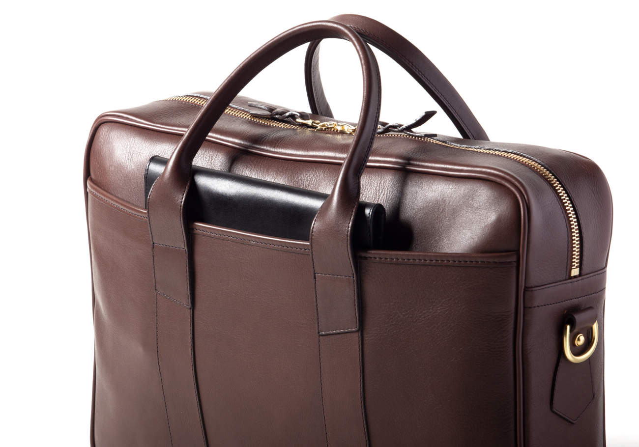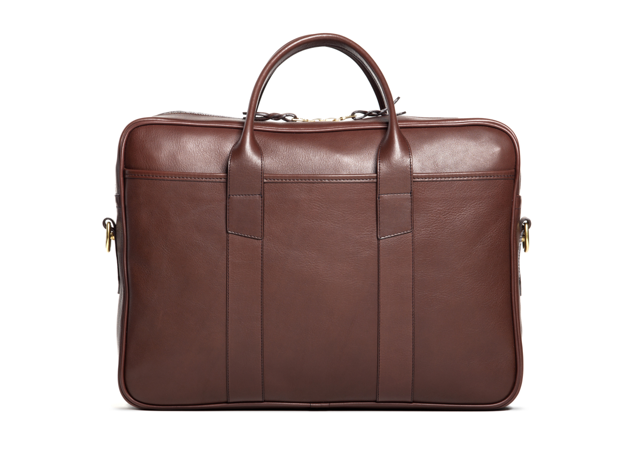 This hardworking business bag speaks to the professional on the go. Framed with piping and fastened by dual brass zipper sliders, this briefcase will be sure to withstand even the busiest of days. The exterior slip pockets keep your handheld devices and papers within reach and a thoughtfully organized interior accommodates even more of your files and up to a 15” laptop. This casual briefcase makes for a true commuter's companion.