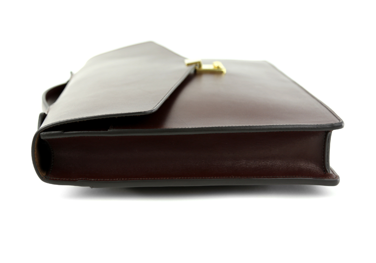 Sleek and portable, this hand-held briefcase is designed to hold the basics without weighing you down. Outfitted with an Amiet key lock, the simple flap closure opens up to a sensibly spacious interior, perfect for carrying a few files and electronic devices.