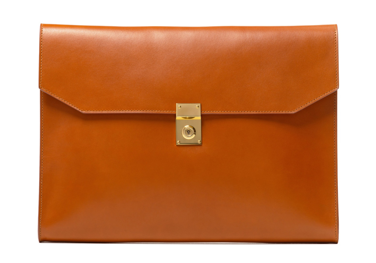 Let them know you mean business. A great alternative when a briefcase is not needed, this Wrap Portfolio will have you transporting documents in style. Tailored to perfection with an Italian solid brass key lock, this underarm carrier has a straightforward interior that will keep your essentials close at hand.